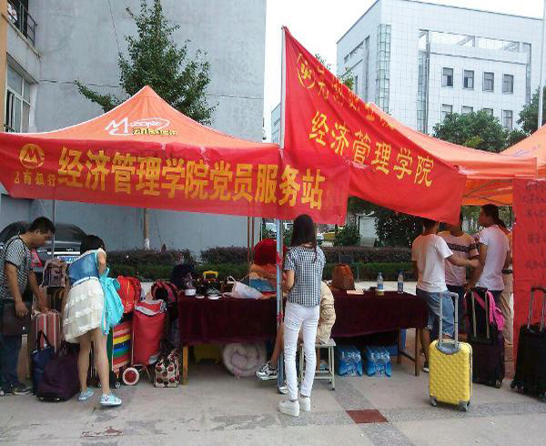 为贯彻党的领导,深入到实践中去,给新生及家长提供帮助,我院团委学生会党章学习班设立了党员服务站,服务新生,党员服务站由预备党员及入党积极分子组成,由他们组成了一支热心服务同学,帮助家长拿行李的服务队,同时,一方面宣传党的知识,鼓励新生积极加入中国共产党。