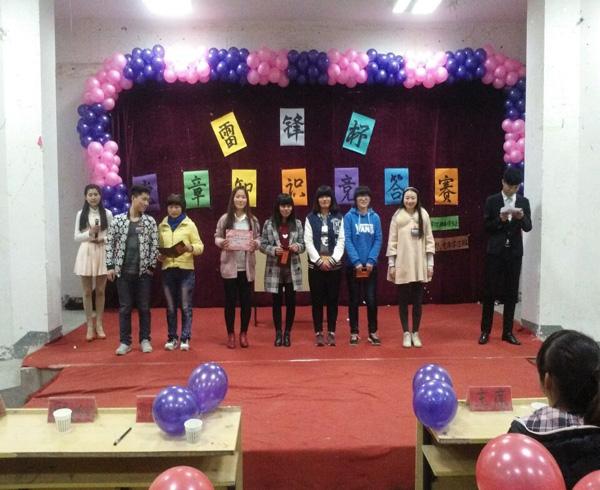 在三月雷锋月,为了加强宣传雷锋精神和党章知识,在3月12日晚上六点于西一阶举办雷锋杯党章知识竞赛,此次活动由团委学生会主办,由团委党章学习班和学生会学习部共同举办,此次活动我们是我们在原有的基础上不断地改进与创新,取得了圆满成功举办此次活动旨在加强同学们学习雷锋精神和加强对党的进一步认识,不断升华同学们的思想,提高同学们的综合素质,加强修养,从自身做起,以身作则,争做文明优秀大学生。