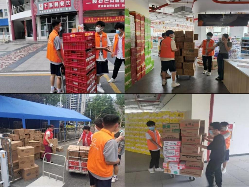 天猫超市是在校学生日常用品购买的主力点,封闭期间能否正常运作关系到所有在校学生权益。考虑到天猫超市很多员工隔离在小区无法到岗、货物需要从学校北门人工托运到超市,人手告急。经济管理学院团委书记朱文斌老师带领学生会积极开展动员活动,号召学生加入“经管橙”紧急志愿服务小队,以此协助天猫超市的物资运输,保证超市正常运营。