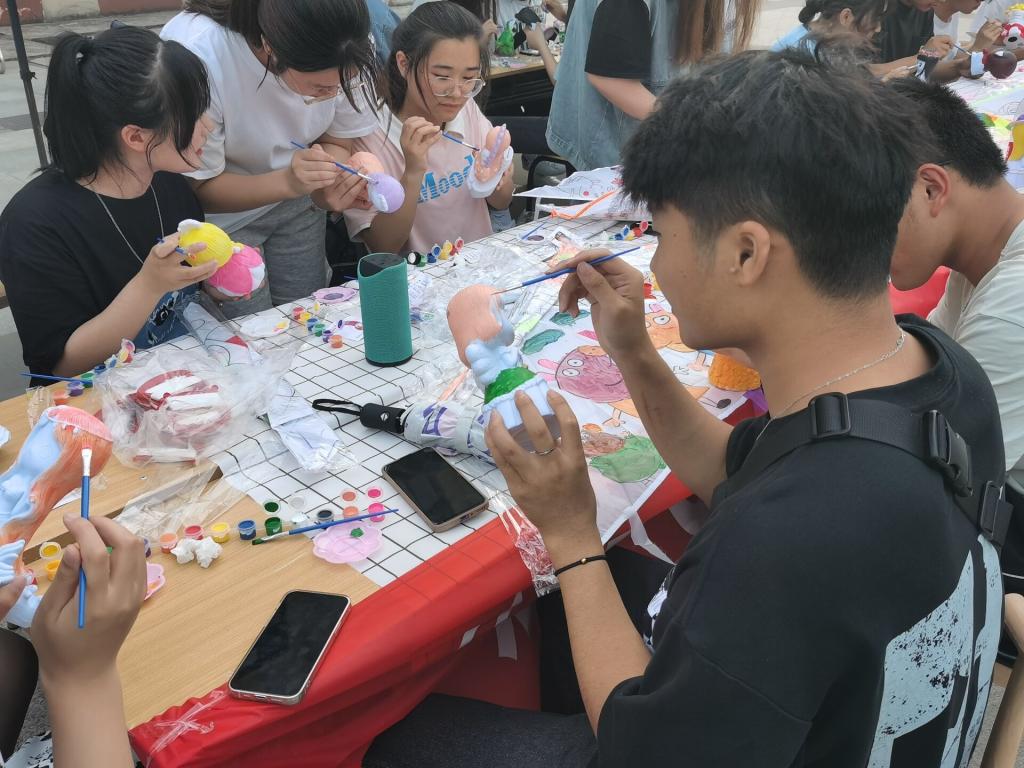 活动开始后,同学们便纷纷迫不及待地投入了绘画世界。个个神情专注地拿着手中的画笔,调和各种鲜艳的颜料,勾勒描绘着自己的风筝和石膏娃娃,把自己独一无二的创意与想法,充分融入了作品当中。还不时和身边的伙伴交流心得,现场气氛活跃。经过大家认真的创作,一个个色彩丰富、五官灵动、栩栩如生的娃娃在手中呈现,这些注入了自己想法的石膏像和风筝,将成为他们在大学校园中最独特的回忆。最后大家将创作出的彩绘石膏作品摆放在一起,同时放飞手中的五彩斑斓的风筝作品,构成一幅美丽的画卷。