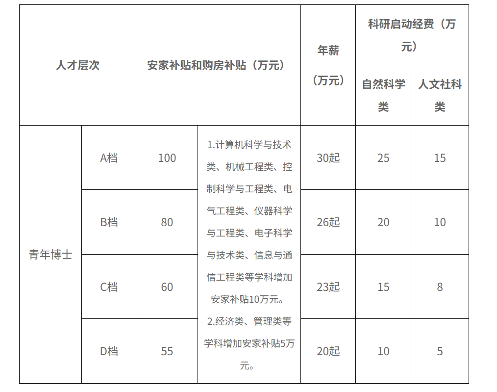 ◇人才经认定后可享受对应层次的安家补贴、购房补贴、年薪待遇、科研启动经费及其他在编人员相关福利待遇。符合条件的人才,安家补贴可申请一次性发放。