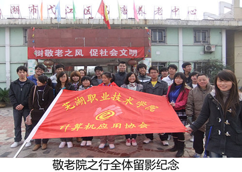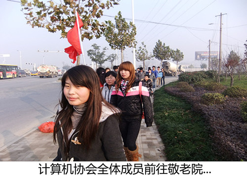 2011年12月4日上午8:00,经济管理系计算机应用协会举办了给敬老院送温暖活动。计算机应用协会所有成员带上慰问品及亲手自制的小礼品步行前往敬老院,一路上同学们兴致勃勃,激情高涨,到达敬老院后,开始了 “送温暖”活动。有的同学在打扫敬老院的卫生,有的同学在帮助老人晒被子,还有的同学陪老人聊天、唱歌……同学们紧张的忙碌溢于言表。