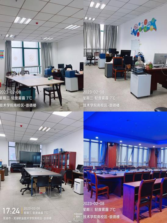 2月8日下午,全体行政人员集中对崇德楼办公区域、实训教室进行整理清洁,力求为全体师生营造干净卫生、和谐友爱的办公环境和教学环境。此外,为积极配合学校各项教学管理规定,顺利完成各项教学任务,由教学秘书牵头,提前完成线上授课平台收集整理、所有课表全部上墙等多项工作,实现线上线下授课的有序衔接。