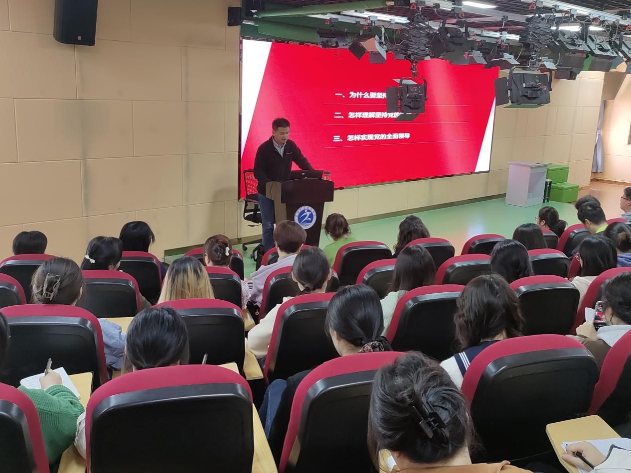 党总支副书记洪俊国结合主题教育相关要求,为党员同志们上了一堂精彩生动、鞭辟入理的主题党课。他以“坚持党的全面领导”为题,围绕“为什么要坚持党的全面领导”、“怎样理解坚持党的领导”和“怎样实现党的全面领导”三个问题,全面系统、深入翔实地阐述了坚持中国共产党全面领导的意义和价值。作为党员队伍中的一份子,我们必须时刻牢记心中使命和肩头担当,不断提升自身思想政治素养,在工作和生活中发挥党员的先锋模范作用。