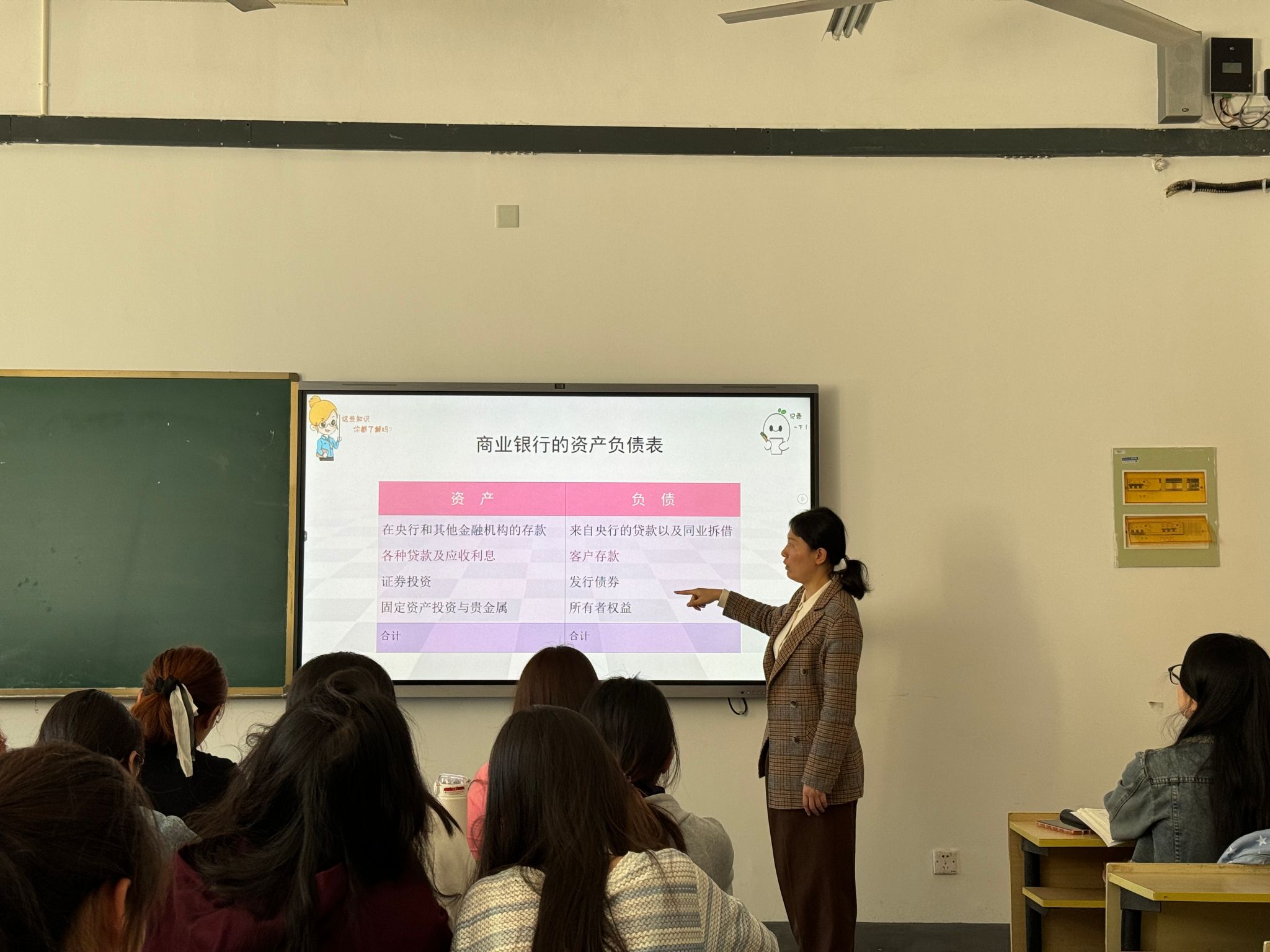 李玲老师授课主要内容是《商业银行与派生存款》。首先,她明确了本次课程教学目标和重难点;其次抛出前导课程问题,并且对上节内容进复盘巩固,同时用金匠投资小故事导入课题引起同学们广泛思考与注意。