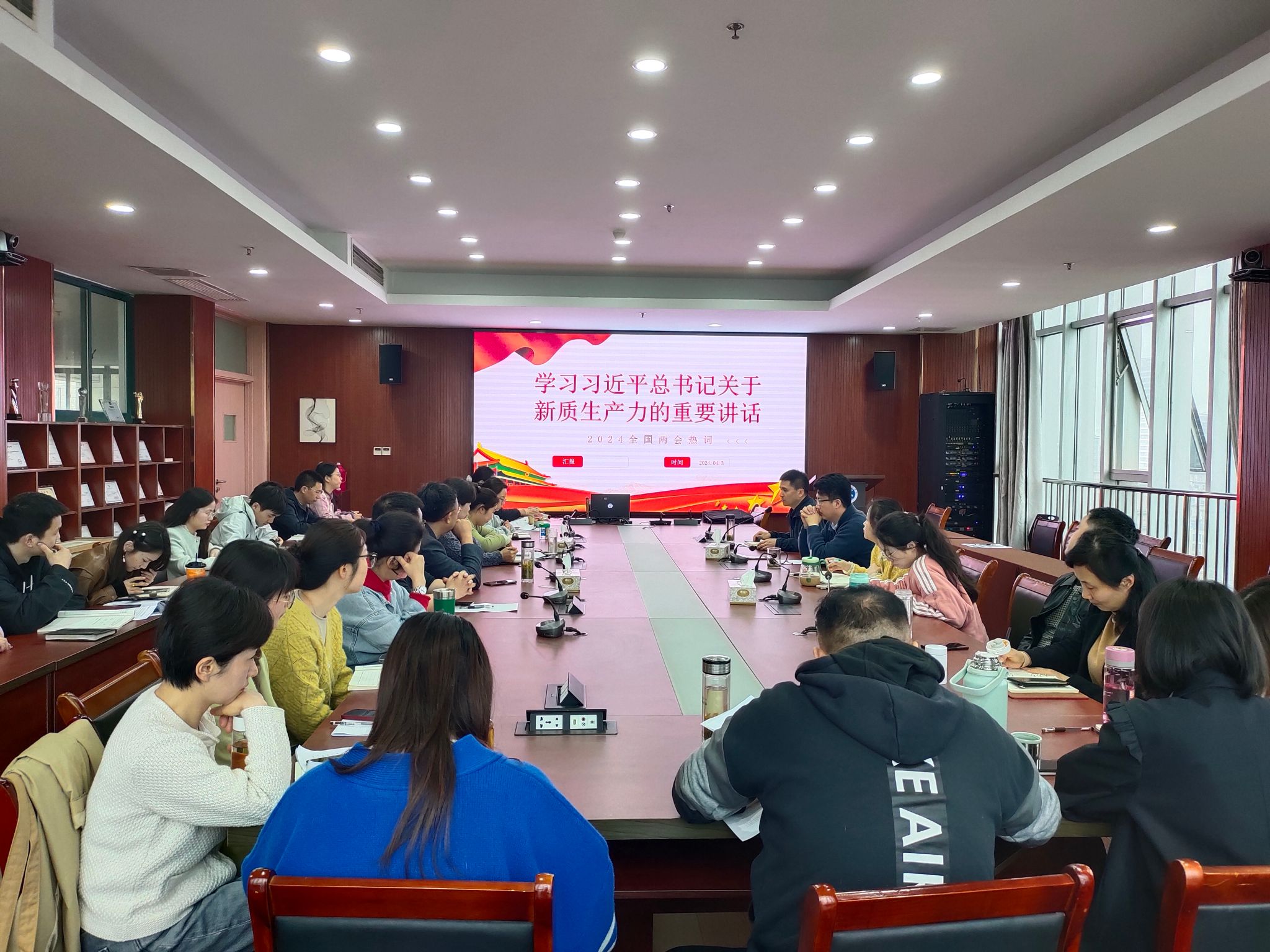 4月3日下午,经济管理学院党总支组织召开全体党员学习会议,集中学习习近平总书记关于新质生产力的重要论述,围绕新质生产力与人才培养、专业建设、课程建设等内容进行学习讨论,凝聚思想共识和工作合力,为学院高质量发展注入新动能、塑造新优势。