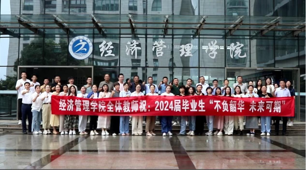 下午4时,经济管理学院全体教职工在崇德楼为2024届毕业生录制祝福视频。祝愿各位2024届毕业生一路乘风破浪,不负韶华,前程似锦!(文/彭丽 图/王旖璇 审/洪俊国)