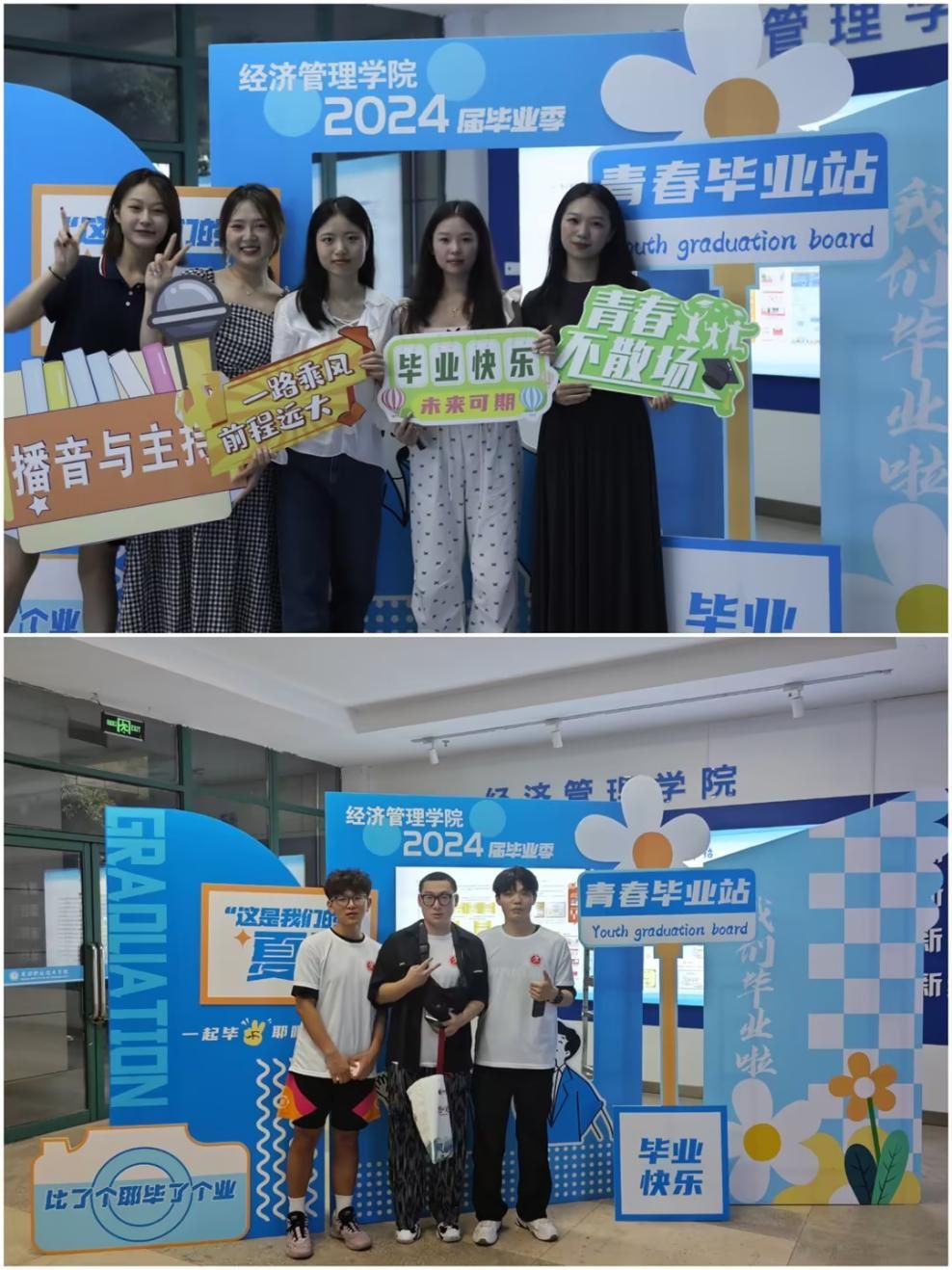 与此同时,经济管理学院专属毕业打卡墙正式亮相崇德楼,毕业生们纷纷驻足合影留念,用影像记录青春,用陪伴编织回忆。