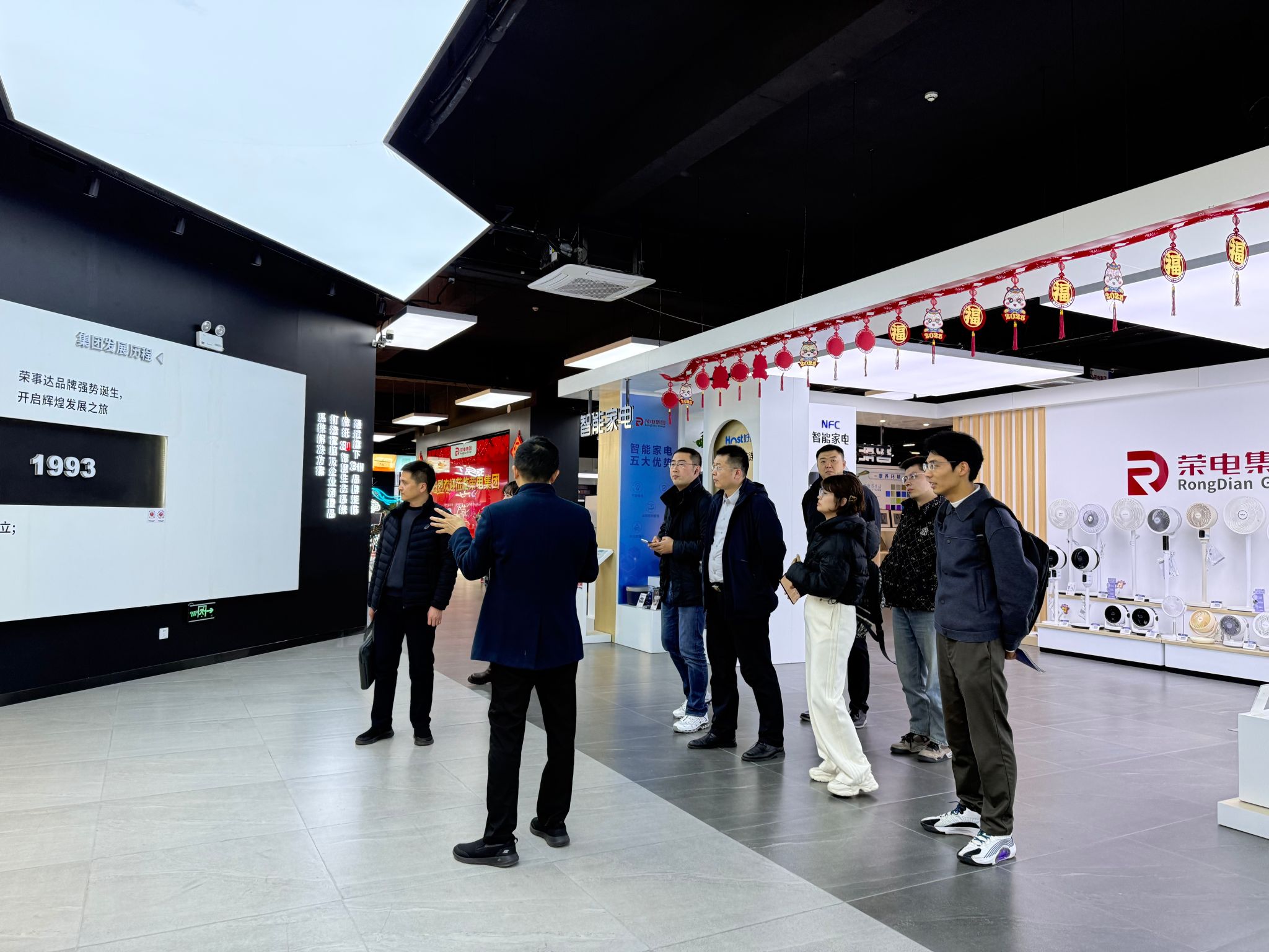 会前,校方代表参观了荣电集团智能家居展馆,深入了解企业数字化转型成果及新技术在电商领域的创新应用。荣电集团董事长侯文明表示:“校企合作是培养产业急需人才的关键路径,我们期待通过AI营销实训基地,实现教育资源与企业资源的优势互补,为行业输送更多‘用得上、留得住’的复合型人才。”