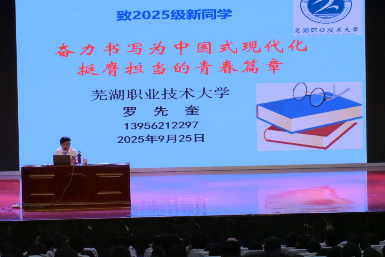 随后,罗先奎教授以其深厚的历史学功底与生动的宣讲风格,从中国式现代化的战略目标切入,系统阐释了“共同富裕”“高质量发展”“人与自然和谐共生”等概念的核心内涵。他表示,中国式现代化为青年搭建了干事创业的广阔舞台,而职业教育正是连接青年技能与国家需求的关键纽带,希望同学们能够利用大学时光,不断提升技能、磨练品性,为中国式现代化教育贡献自己的力量。