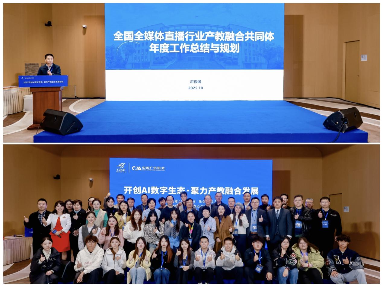 10月25日,由我校发起成立的全国全媒体直播行业产教融合共同体年度论坛在北京中关村国际创新中心成功举办。本次论坛作为第32届中国国际广告节、第34届亚洲广告大会的重要分论坛活动,吸引了行业企业、院校及研究机构的广泛参与。论坛以“开创AI数字生态,聚力产教融合发展”为主题,由中国广告协会主办,芜湖职业技术大学作为承办方之一共同组织。
